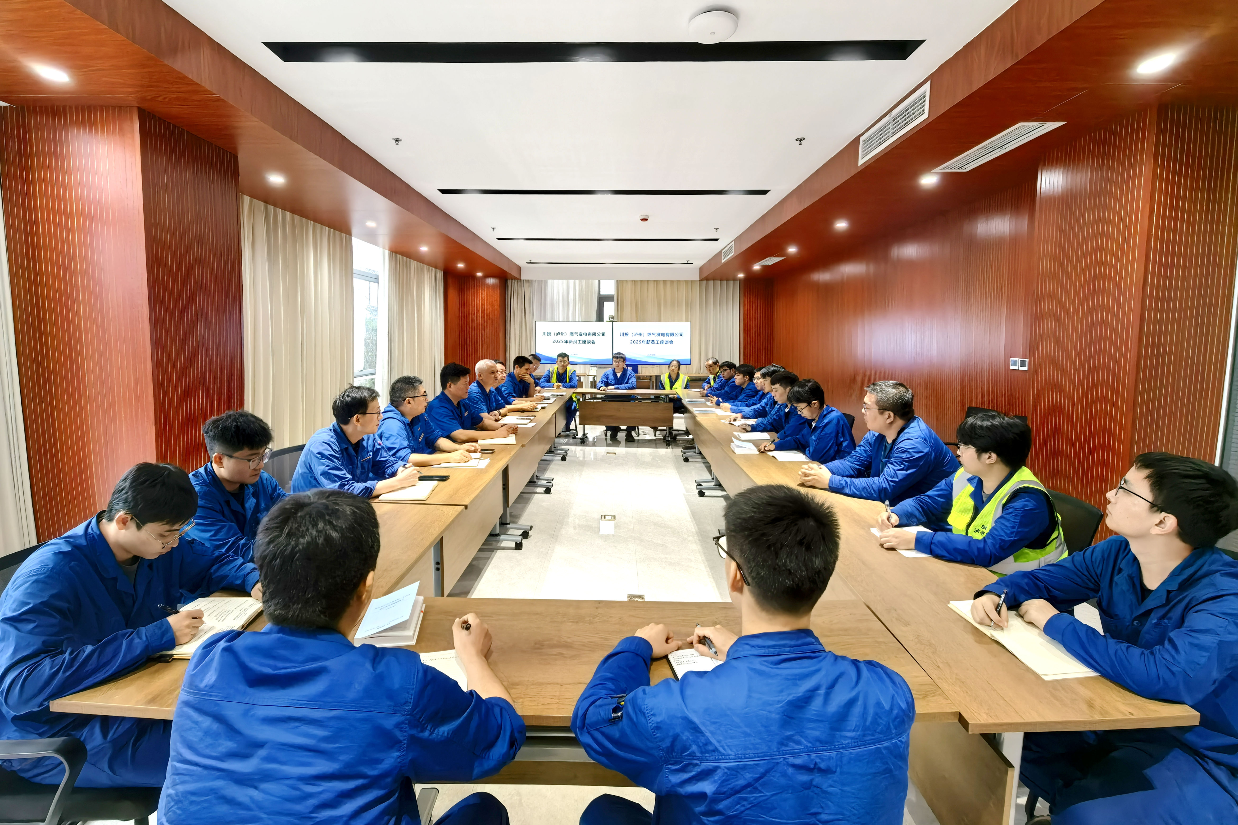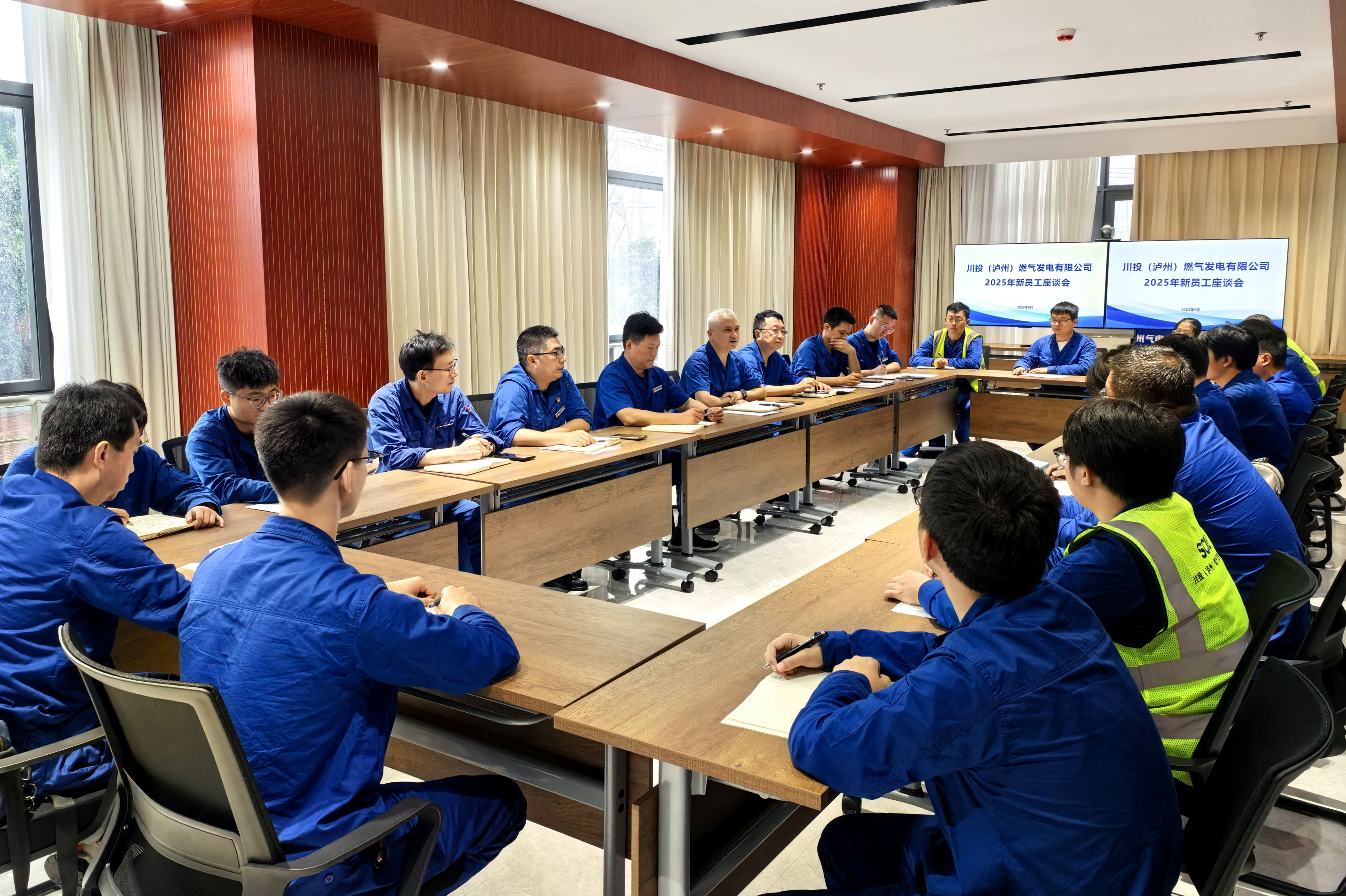 座谈会上,新员工逐一自我介绍,汇报了近期学习进展、跟班运行及机组调试实践体验,并分享了后续学习规划。公司领导对新员工的加入表示欢迎,详细介绍了天然气发电项目建设进展、行业现状及集团发展前景,并对其下一阶段工作学习提出具体要求。