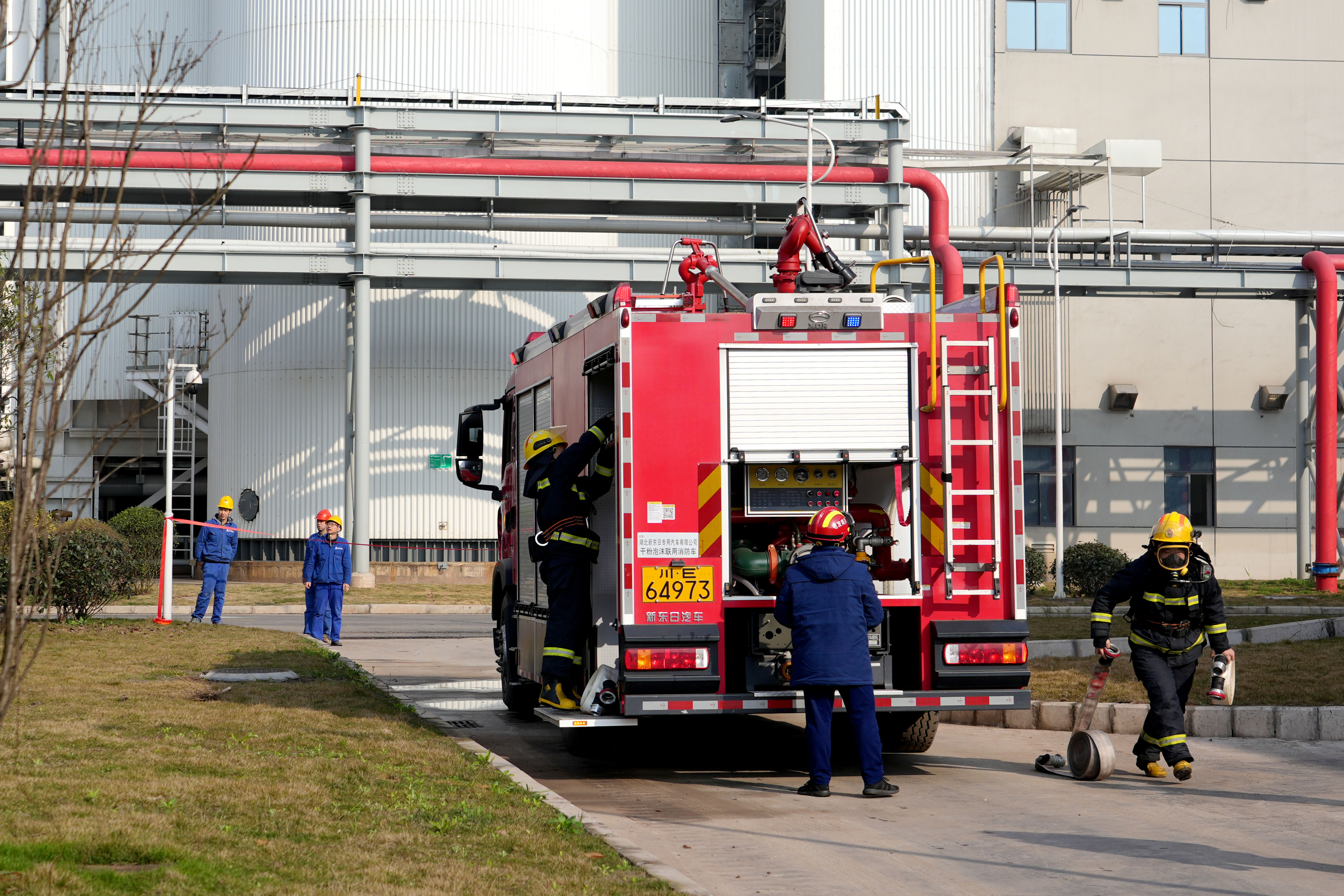 为强化消防安全保障能力,提升突发火情协同处置水平,2月11日上午,泸州气电组织各部门、外委维护单位和消防队,在厂内调压站区域开展天然气泄漏着火事故消防联合应急演练。本次演练以实战化方式检验应急处置流程,全力筑牢职工生命安全和公司财产安全防线。